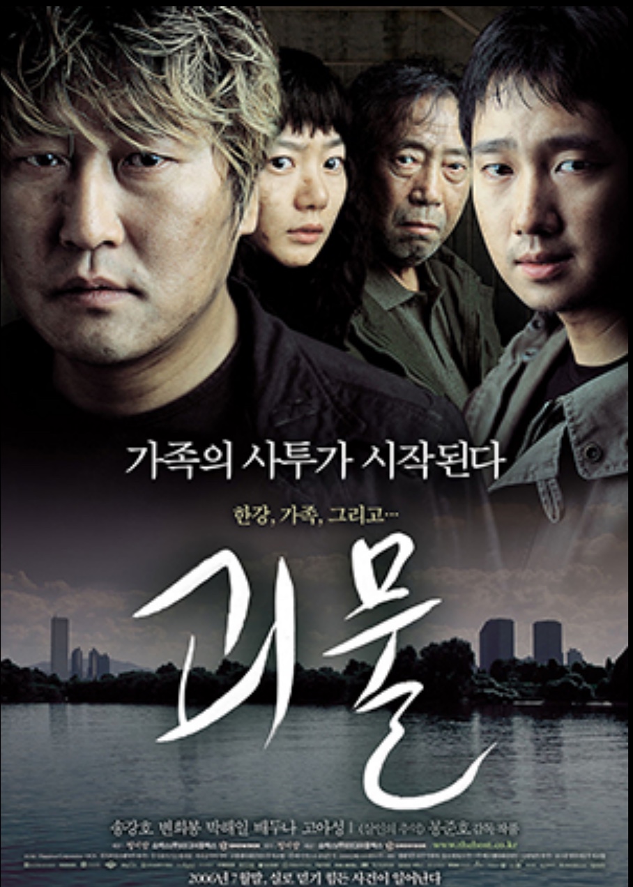 '괴물'은 미군 병리학자가 독성 화학물질을 한강에 처리하라는 명령을 내리면서 괴물 같은 양서류 생물이 탄생하는 것으로 시작된다. 그런 다음 영화는 강가에서 작은 스낵바를 운영하는 박씨 가족의 모습으로 전환됩니다. 그 생물이 박씨 가문의 막내인 현서를 납치하면서 내러티브가 본격화됩니다. 아버지 강두, 할아버지 희봉, 이모 남주, 삼촌 남일로 구성된 가족은 그녀를 괴물의 손아귀에서 구출하기 위해 뭉친다.