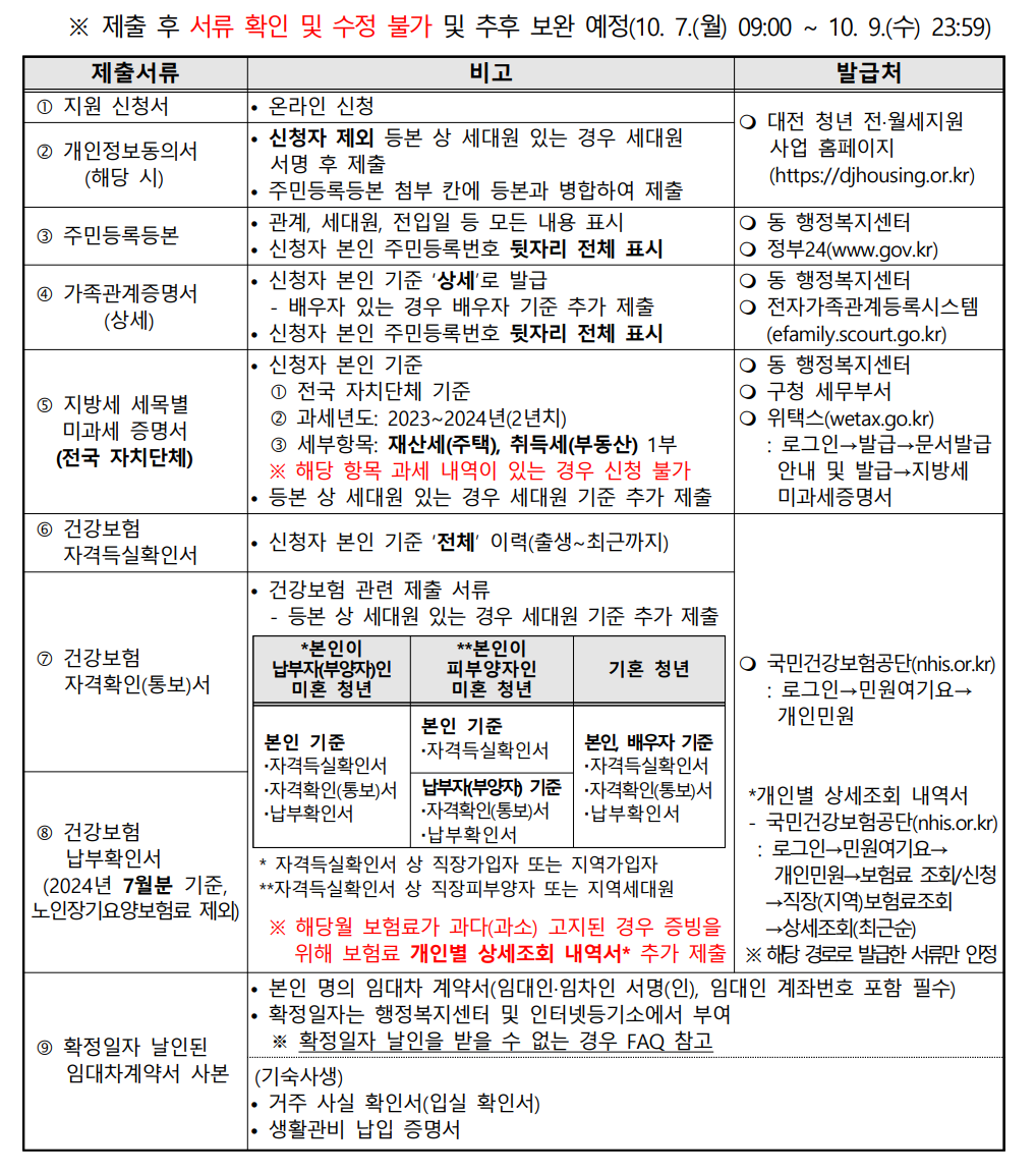 ※ 모든 서류는 공고일 24. 8. 28일 이후 발급분만 인정