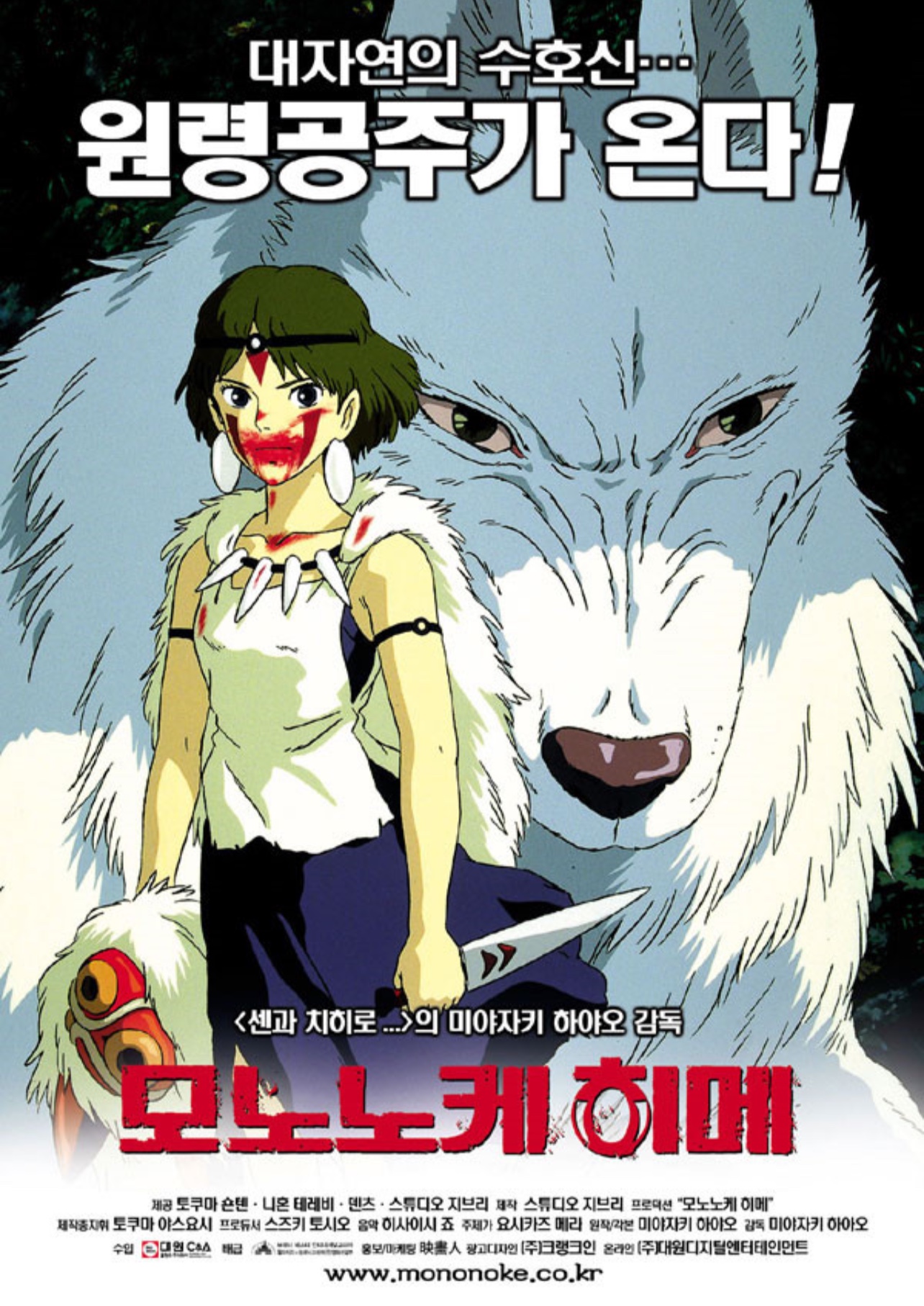 모노노케 공주라는 이름의 산은 미야자키의 가장 상징적인 캐릭터 중 하나입니다. 늑대 여신 모로(Moro)의 손에 자란 산(San)은 자신의 종보다는 숲의 동물들과 더 많은 동질감을 느낍니다. 숲과 그 주민들에 대한 그녀의 맹렬한 충성심은 그녀를 침략자로 여기는 아이언 타운의 인간들과 폭력적인 대결을 벌이게 만듭니다.