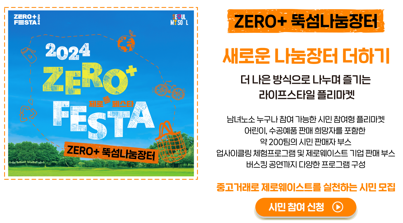 ZERO+뚝섬나눔장터 : 2024. 08. 31(토) ~ 09. 29(일)