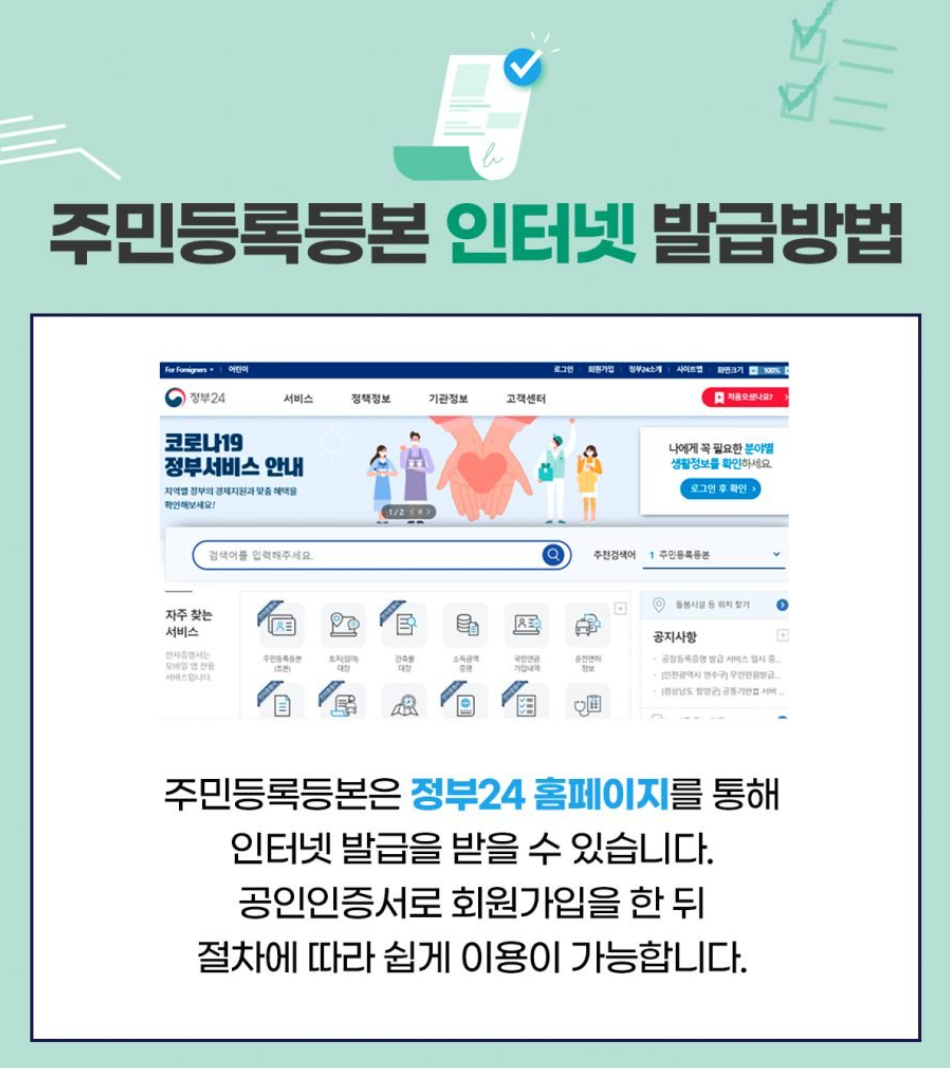 주민등록등본을 인터넷으로 발급받는 방법은 다음과 같습니다.