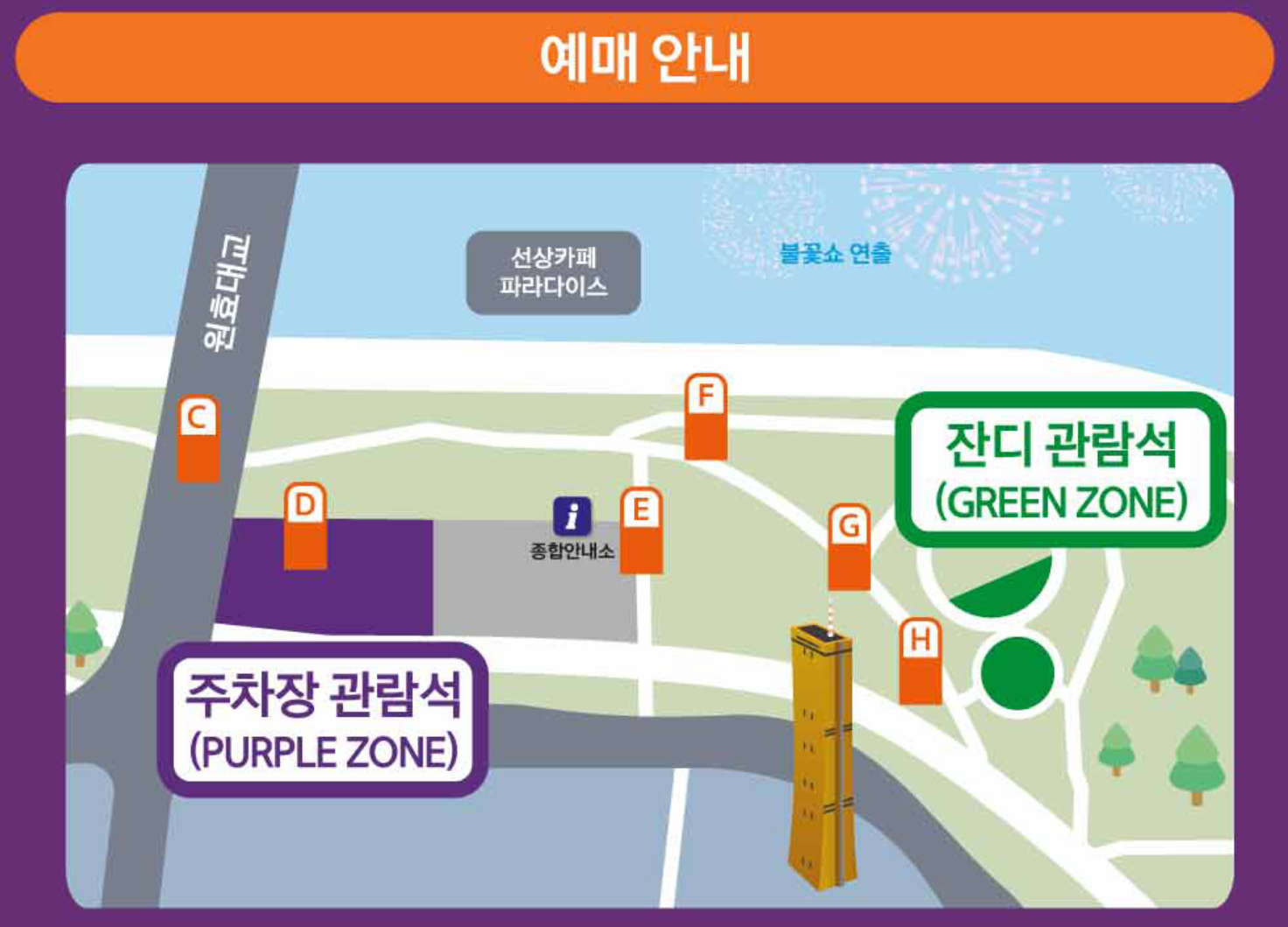 뭐니뭐니 해도 불꽃 명당은 '골든티켓' 좌석입니다.